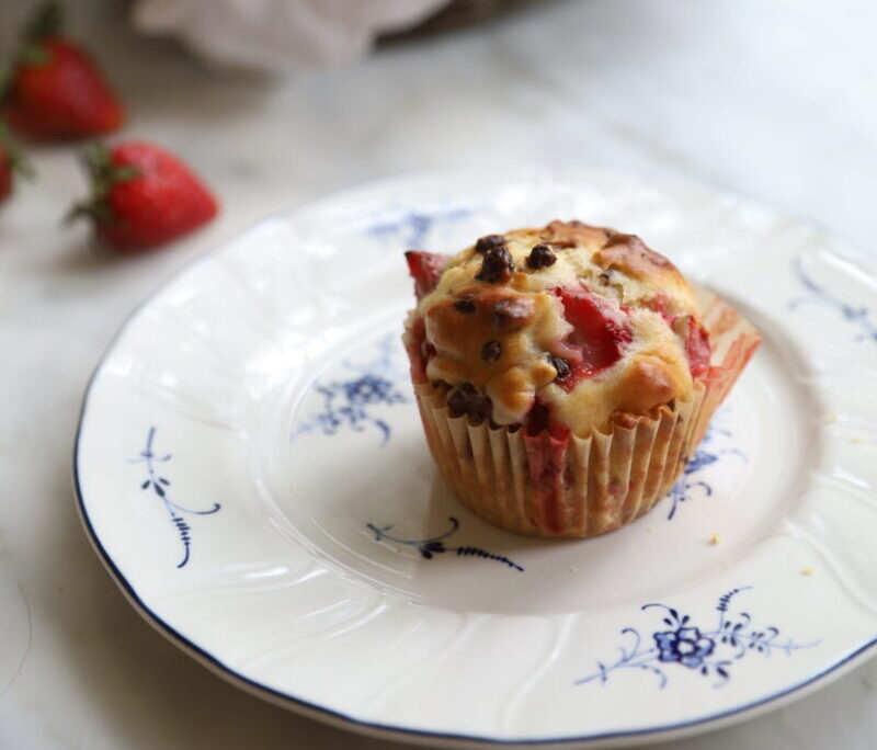 - Add a sliced strawberry and a few cacao nibs to the muffin top prior to baking