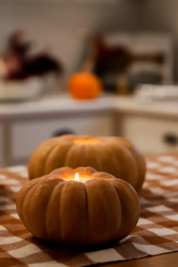 - Using a pencil, trace the outline of a tea light on each pumpkin. This will serve as your stencil for carving.